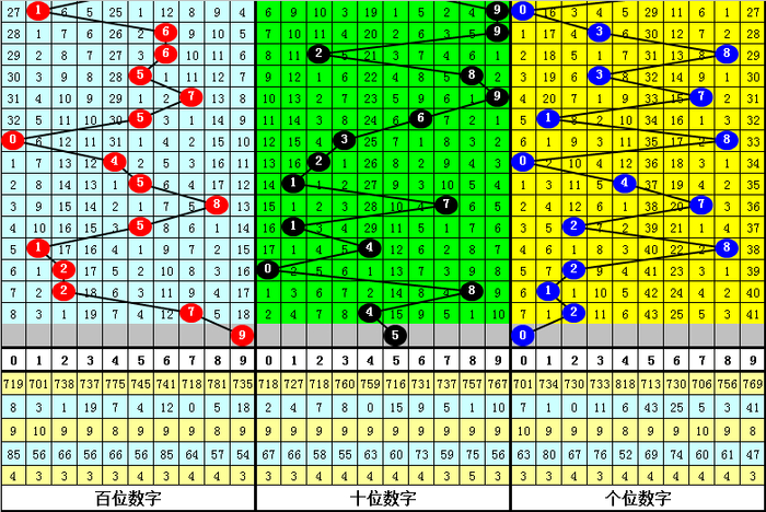 百位分析:百位最近9期出号:0-4-5-8-5-1-2-2-7,奖号012路比为1:3:5,大小比为4:5,奇偶比为4:5,本期百位参考号码589。