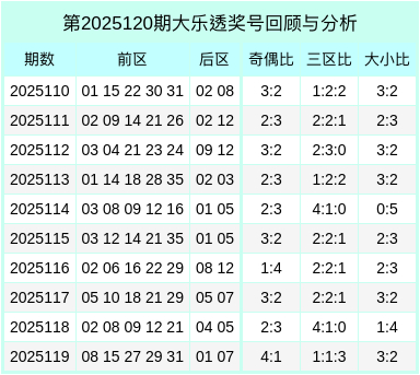 当期前区号码大小比为3:2,三区比为1:1:3,奇偶比为4:1。